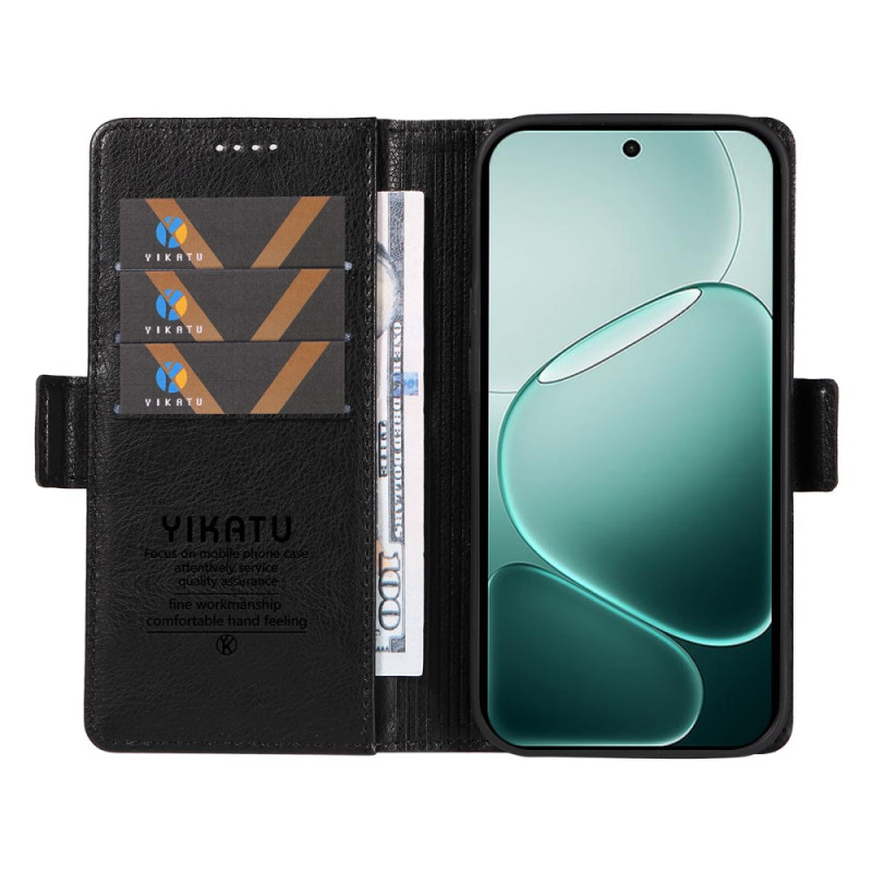 Descubra la funda cartera YIKATU, que combina elegancia y funcionalidad. Diseñada en piel de PU de primera calidad con textura de lichi e interior de TPU esmerilado, ofrece una protección completa a la vez que incorpora dos ranuras para tarjetas y un bolsillo para el efectivo para tus objetos de uso diario.