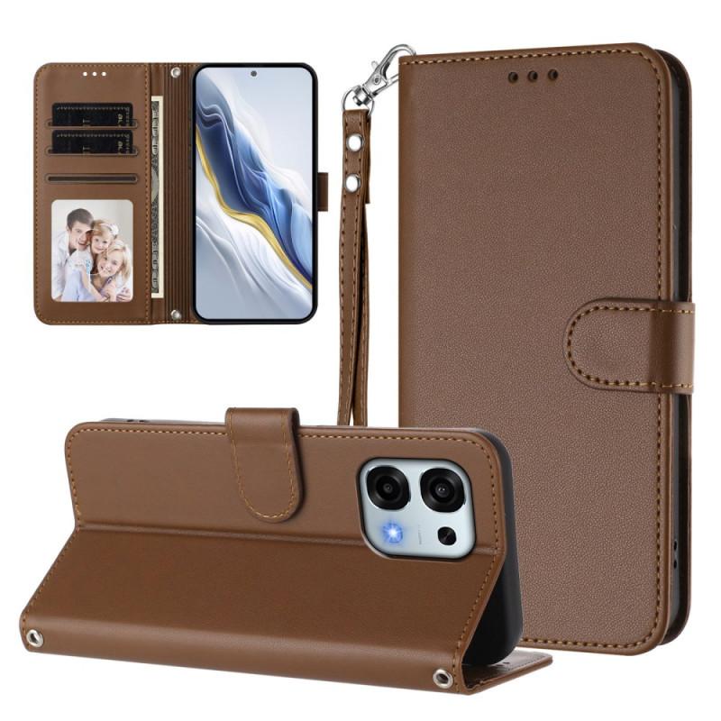 Elegante funda cartera para Oppo A6 Pro 5G con 3 ranuras para tarjetas, soporte manos libres y práctica colgante de mano. Protección completa contra los golpes y caídas cotidianos.