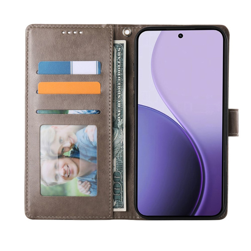 Elegante funda tipo cartera con diseño de mariposa floral en relieve para su Oppo A6 Pro 5G / 4G. Combina estilo y protección con esta funda de piel sintética con múltiples ranuras para tarjetas, un soporte plegable ajustable y una práctica colgante de mano para un transporte seguro.