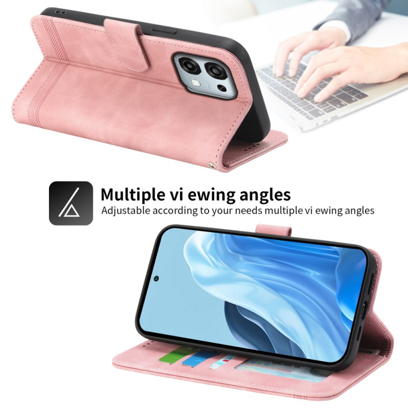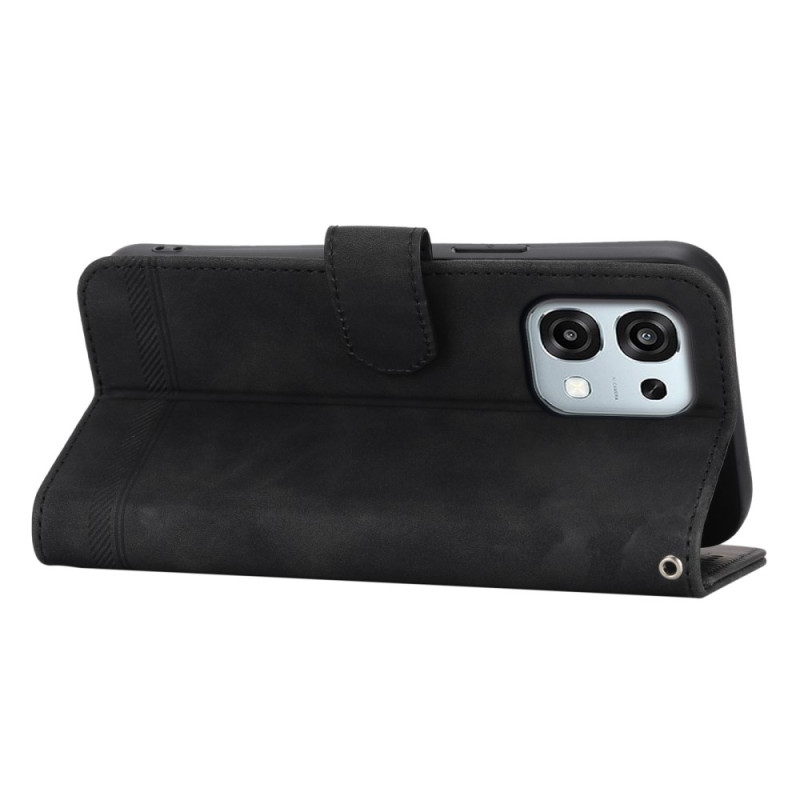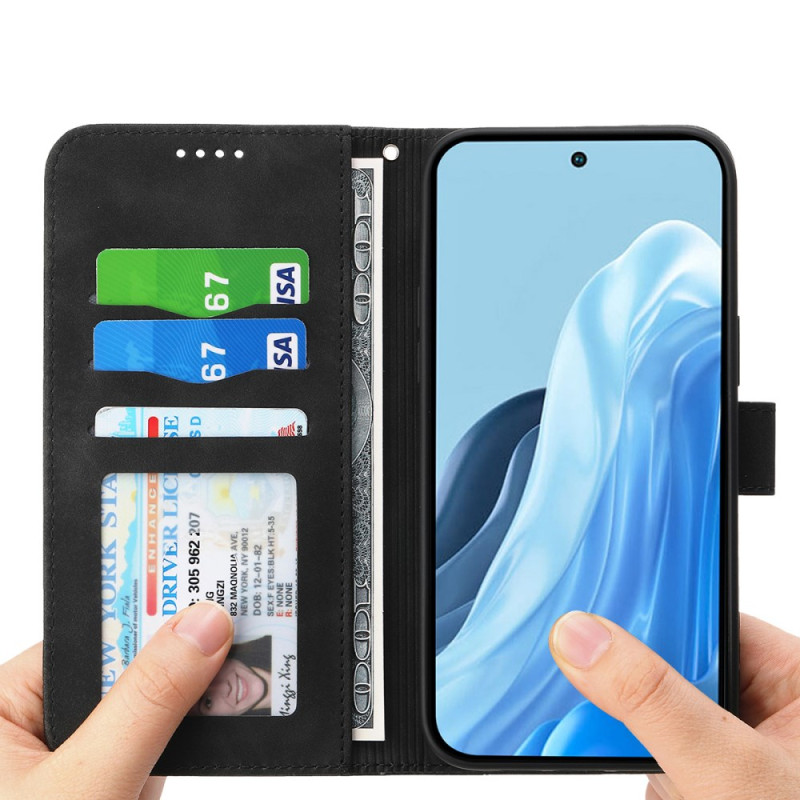 Elegante funda cartera con impresión de líneas refinadas. Presenta una funda interior de TPU flexible, compartimentos para tarjetas y efectivo, función de soporte ajustable y cierre magnético seguro. Incluye una práctica colgante de mano.