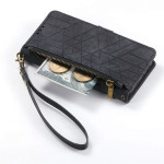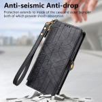 Protege tu smartphone con estilo con esta funda cartera multifuncional. Con múltiples ranuras para tarjetas, un bolsillo seguro con cremallera y una práctica colgante de mano, combina un estilo geométrico con una protección integral.