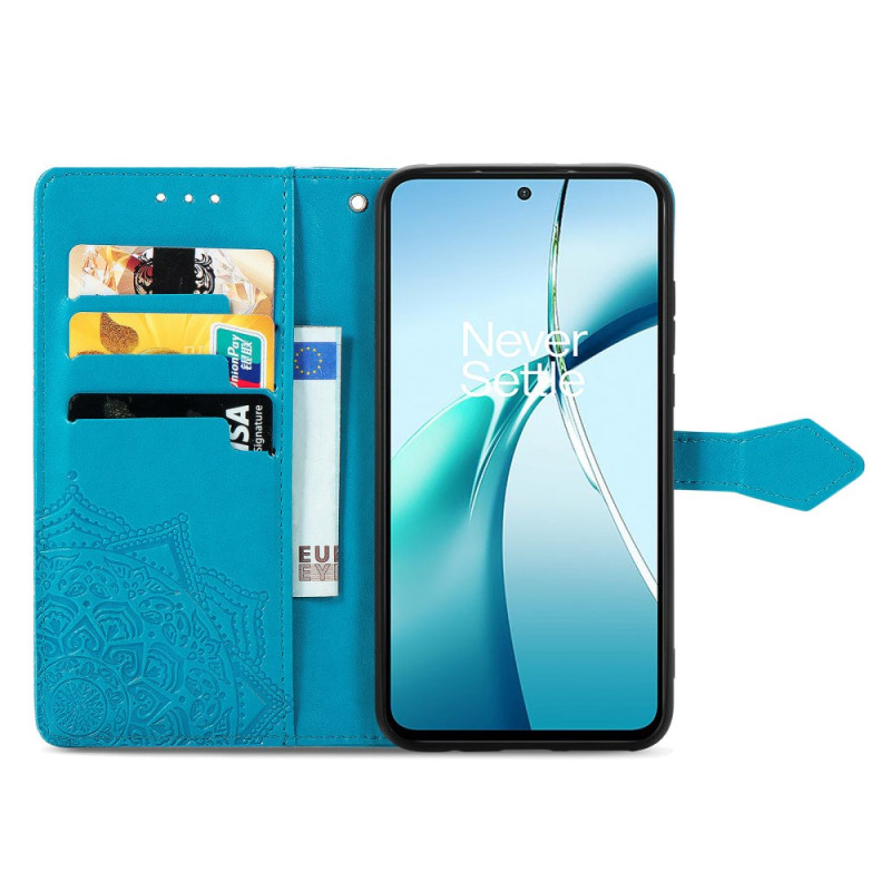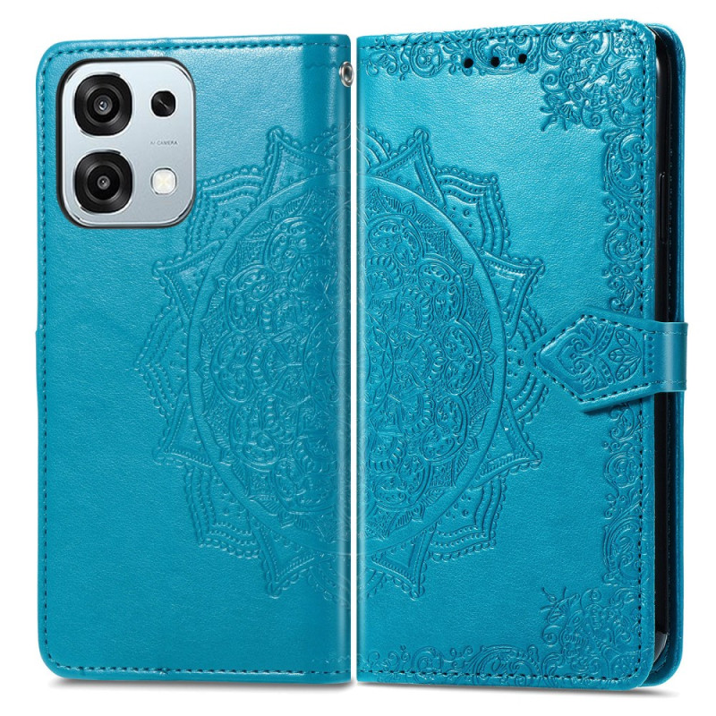 Elegante funda tipo cartera con estampado de mandalas en relieve para tu Oppo A6 Pro 5. Cuenta con 3 ranuras para tarjetas, un bolsillo para notas y un soporte integrado para tener las manos libres. Protección óptima con cierre magnético seguro.
