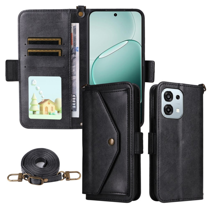 Protege tu Oppo A6 Pro 5G / 4G con estilo gracias a esta funda cartera multifuncional. Con múltiples ranuras para tarjetas, un cierre magnético seguro y una colgante ajustable de 150 cm para el hombro, combina una protección óptima con la practicidad del día a día.