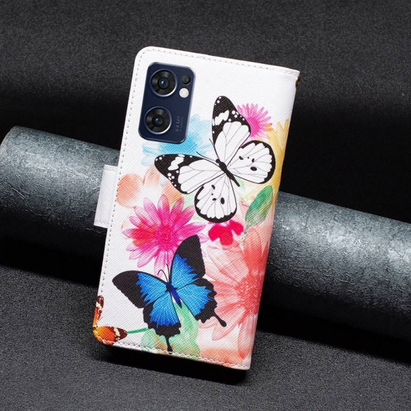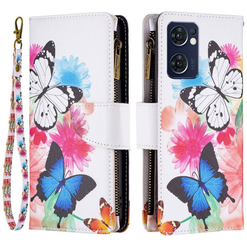 Esta funda de bolsillo con cremallera Royal Butterfly asegura todo el Oppo Find X5 Lite y hace a la vez de cartera.
