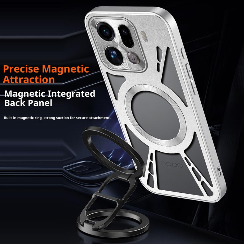Protege tu Oppo Find X9 5G con esta innovadora funda magnética. Su diseño perforado favorece una óptima disipación del calor, mientras que su construcción reforzada de silicona, PC y metal garantiza la máxima protección contra las caídas y los impactos cotidianos.