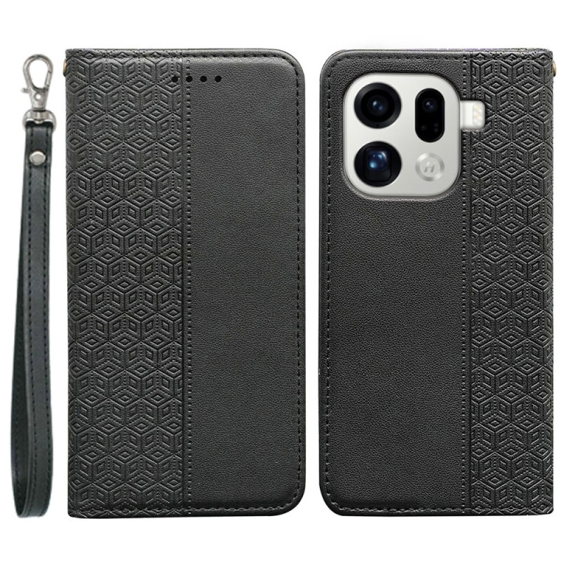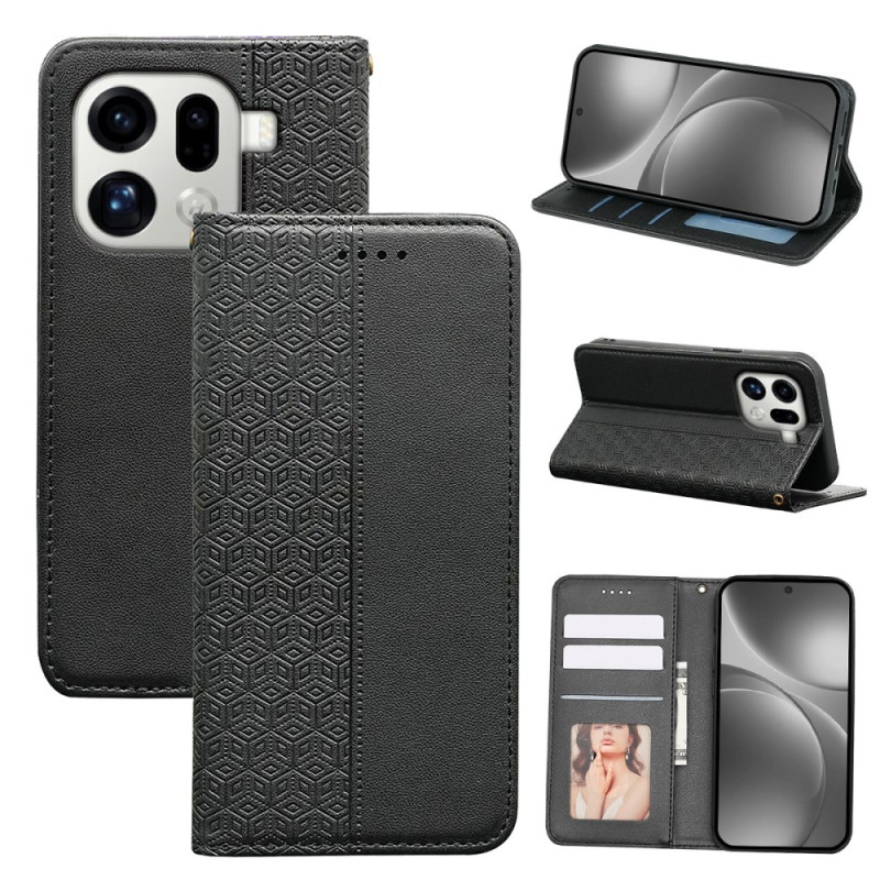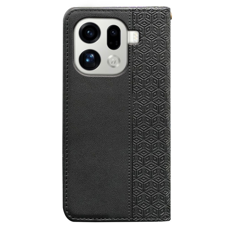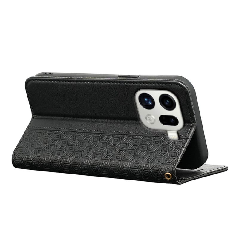 Descubre nuestra elegante funda monedero para Oppo Find X9 Pro 5G. Diseño de cuadros en relieve, fabricada en piel de PU de primera calidad. Incluye ranuras para tarjetas y dinero, soporte de visualización ajustable y cierre magnético seguro.