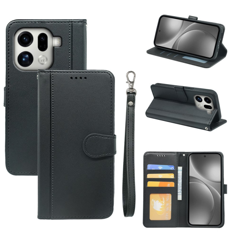 Protege tu Oppo Find X9 Pro 5G con estilo gracias a esta funda cartera multifunción. Con compartimentos para tarjetas y efectivo, un cierre magnético seguro y una colgante de mano desmontable, combina practicidad con elegancia para el día a día.