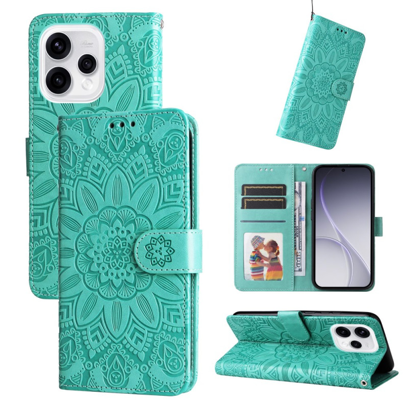 Protege tu Oppo Reno 15 5G con estilo gracias a esta funda monedero de piel PU de primera calidad. Su refinado diseño con motivo de girasol en relieve combina estilo y funcionalidad con sus ranuras para tarjetas, función de soporte y cierre magnético seguro.