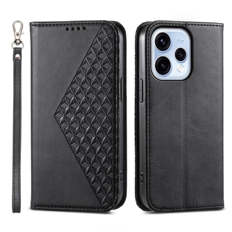Protege tu Oppo Reno 15 5G con estilo gracias a esta funda monedero de cuero PU texturizado. Con un sofisticado diseño de rombos, ofrece doble protección e incluye ranuras para tarjetas y dinero en efectivo. Incluye colgante para la muñeca.