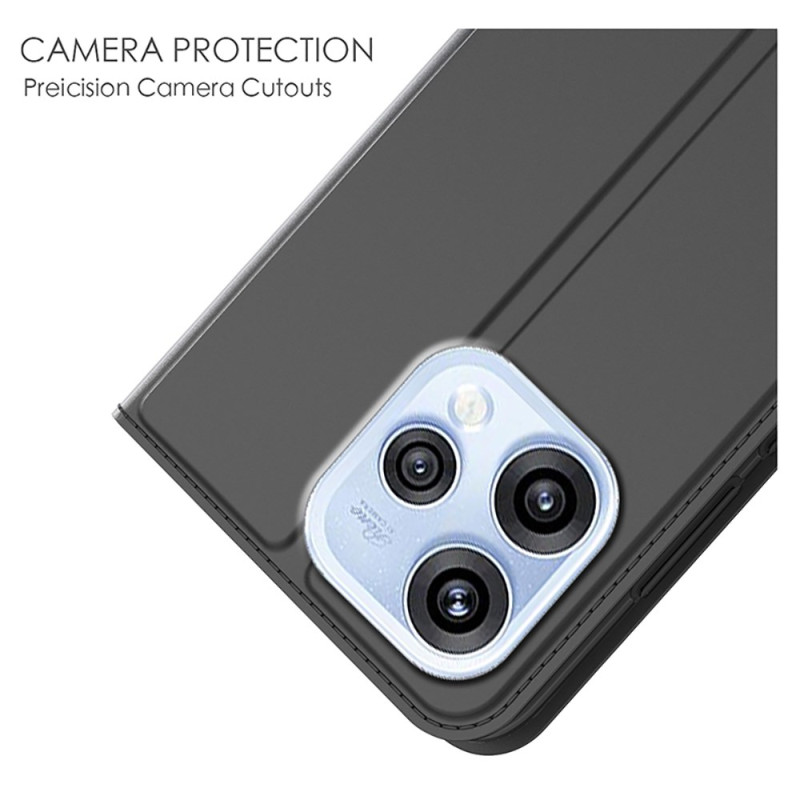 Étui en cuir PU texturé pour Oppo Reno 15 5G avec porte-cartes intégré et fonction support. Fermeture magnétique sécurisée et découpe frontale pour répondre aux appels sans ouvrir l'étui. Protection élégante et pratique au quotidien.