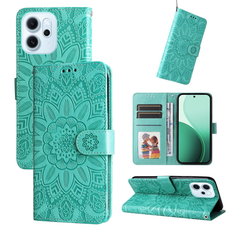 Protege tu Oppo Reno 15 F 5G con estilo gracias a esta funda monedero de piel PU de primera calidad. Con un bonito motivo de girasol en relieve, prácticas ranuras para tarjetas y función de soporte, esta funda combina estilo y funcionalidad.