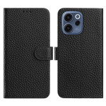 Elegante funda cartera de piel auténtica con textura de lichi para Oppo Reno 15 F 5G. Cuenta con un soporte ajustable, 3 ranuras para tarjetas, bolsillo para dinero en efectivo y cierre magnético seguro. Protección óptima contra caídas.