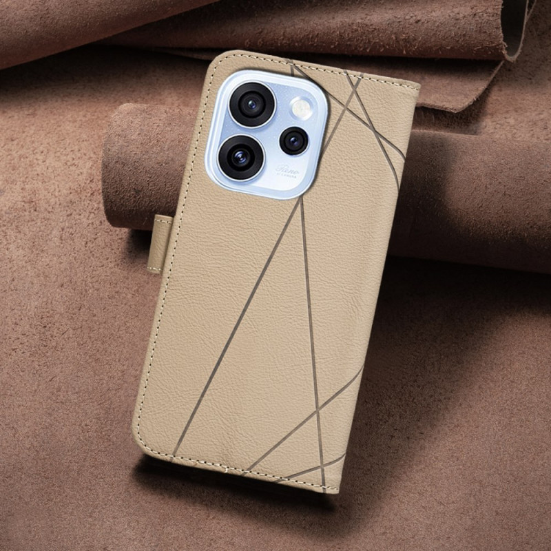Protege tu Oppo Reno 15 F 5G con esta elegante funda tipo cartera. Moderno diseño geométrico, bloqueo RFID antifraude, 3 ranuras para tarjetas y compartimento para billetes. Soporte plegable integrado para tener las manos libres.