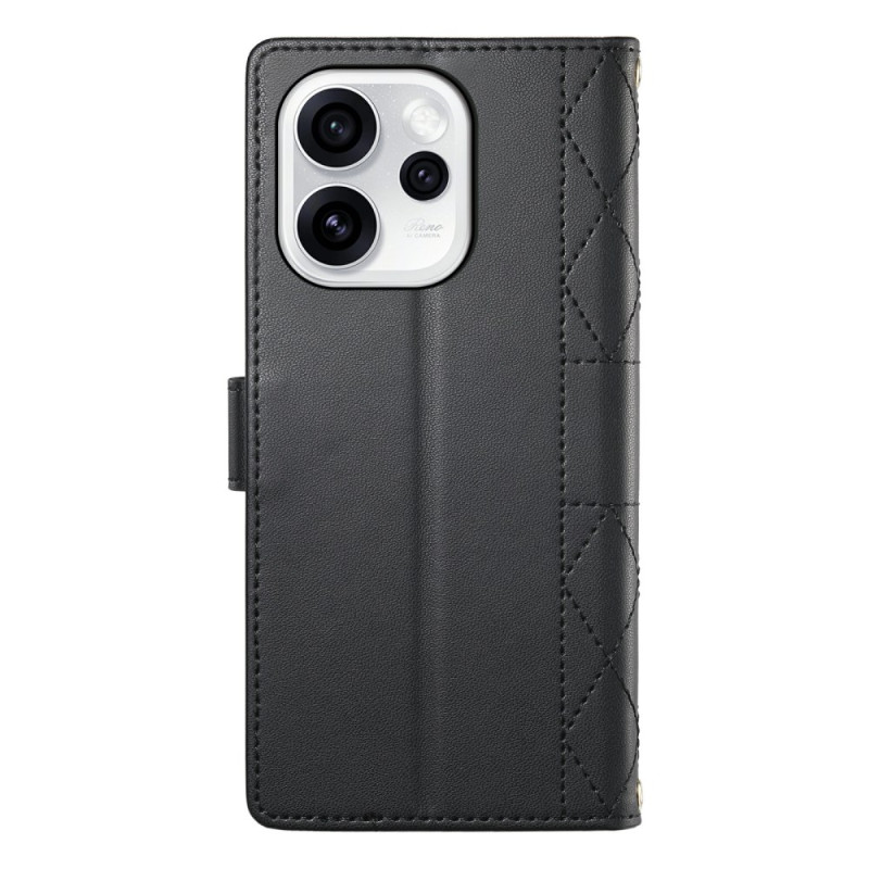 Descubre nuestra elegante funda cartera para Oppo Reno 15 Pro 5G, que combina protección de primera calidad y practicidad. Con un refinado diseño acolchado, ofrece 3 ranuras para tarjetas, 1 bolsillo para billetes y una función de soporte integrada. Se suministra con correas ajustables cortas y largas.