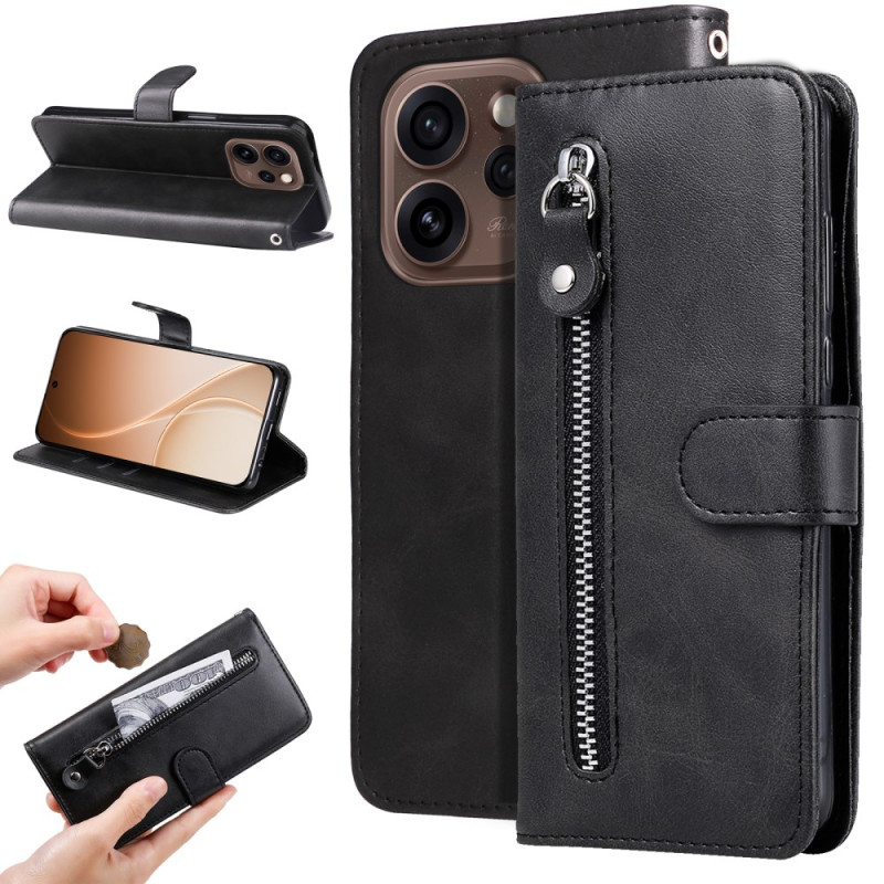 Funda cartera multifunción para Oppo Reno 15 Pro 5G. Combina elegancia y practicidad con sus múltiples compartimentos para tarjetas, bolsillo seguro con cremallera para objetos pequeños y función de soporte para ver con las manos libres. Protección completa de 360° contra golpes y arañazos.