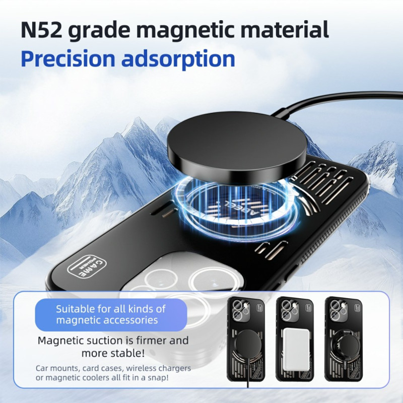 Funda magnética de alto rendimiento para Oppo Reno 15 Pro 5G con sistema avanzado de disipación del calor. Innovador diseño hueco para una óptima circulación del aire. Anillo magnético N52 integrado para una fijación estable. Protección completa con almohadillas antichoque en las esquinas.