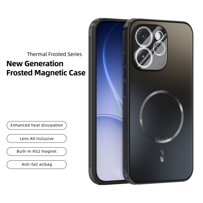 Protege tu Oppo Reno 15 Pro 5G con esta funda magnética ultrarresistente. Diseño con refrigeración de 360°, acabado mate antiarañazos y protección reforzada en las esquinas con almohadillas antichoque. Compatible con accesorios magnéticos.