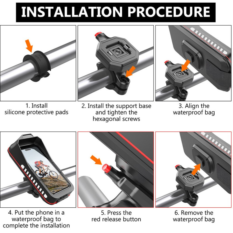La navegación y la seguridad de su smartphone nunca deberían verse comprometidas por las vibraciones o la intemperie de la carretera. Este soporte HL-176A ofrece una protección total gracias a su ingeniería de absorción de impactos, que reduce significativamente las vibraciones. Con certificación IPX5, está diseñado con un mecanismo impermeable que protege su dispositivo de la lluvia. La fijación es segura y se ajusta fácilmente a manillares de 22,2 a 28,6 mm sin necesidad de herramientas. El sistema de rotación de 360° permite un posicionamiento perfecto para el uso del GPS o las llamadas, garantizando una visibilidad óptima.