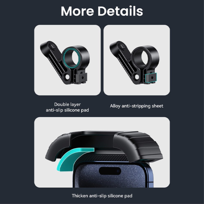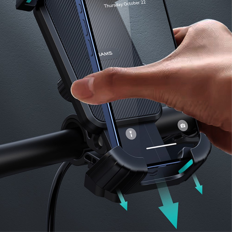 El acceso inmediato a la navegación y la seguridad están garantizados gracias a este soporte USAMS, diseñado para resistir los golpes y magulladuras de la carretera. El mecanismo de bloqueo de un solo clic garantiza la fijación instantánea del smartphone (de 4,7 a 6,7 pulgadas) al manillar, sin riesgo de que se suelte. Fabricado en PC y silicona, ofrece tanto durabilidad como absorción de vibraciones. Su cabezal giratorio de 360 grados permite un ajuste óptimo del ángulo de visión, y su diseño inteligente preserva el acceso a los botones y funciones de la pantalla.