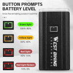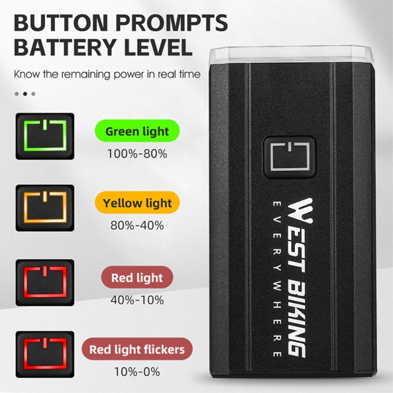 Iluminación fiable y resistencia a condiciones extremas son el corazón del diseño de esta lámpara WEST BIKING. Su funda de aleación de aluminio garantiza una disipación eficaz del calor y una mayor durabilidad, por lo que está preparada para enfrentarse a cualquier condición meteorológica gracias a su índice de impermeabilidad IPX6. Con 1000 lúmenes, garantiza una visibilidad clara a largas distancias, esencial para la seguridad nocturna. Su batería de 4400 mAh ofrece una gran autonomía, complementada con cinco modos de iluminación (incluido SOS) para adaptarse a cualquier situación. El sistema de montaje rápido hace que la instalación sea sencilla y cómoda.