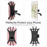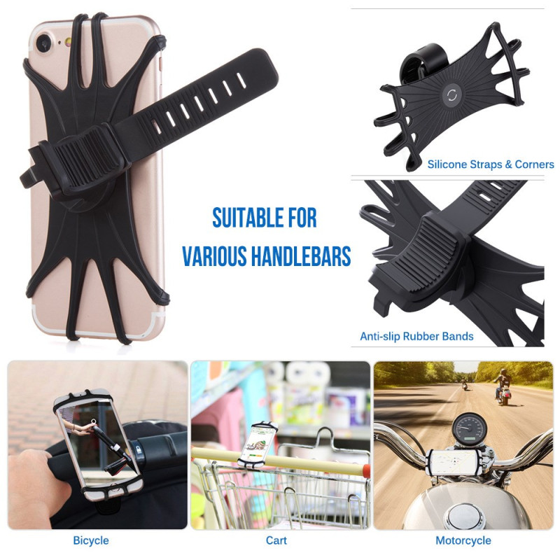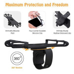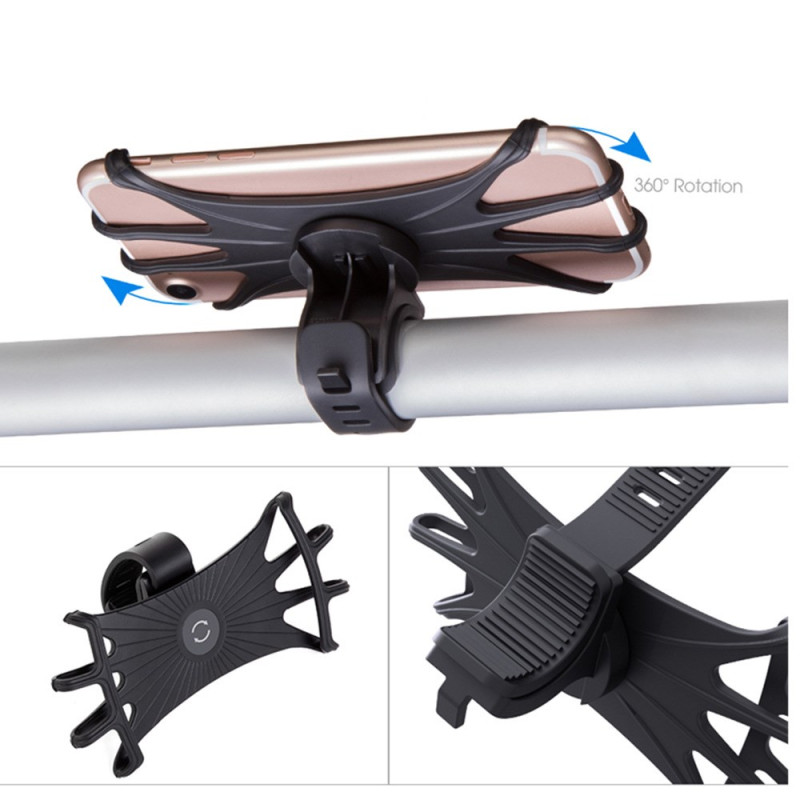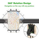 La ingeniería flexible y antideslizante del soporte garantiza la estabilidad en terrenos accidentados. Fabricado con silicona resistente y flexible, proporciona una protección eficaz contra las vibraciones de la carretera. La colgante extensible garantiza la compatibilidad universal con smartphones de 4 a 6 pulgadas. El clip de goma estriado lo sujeta firmemente al manillar. Gracias a la rotación de 360 grados, los usuarios pueden ajustar el ángulo de visión para una navegación óptima en modo vertical u horizontal.