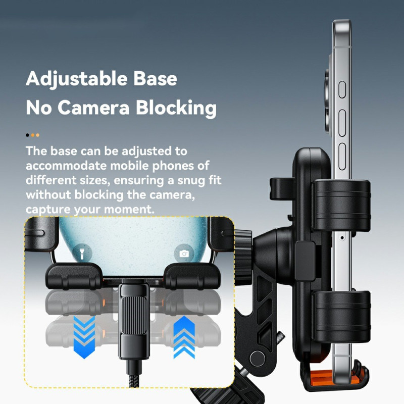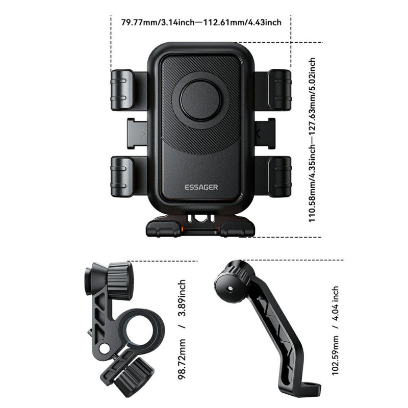 El soporte para retrovisor ESSAGER cuenta con doble bloqueo para una seguridad y facilidad de uso absolutas. Diseñado para motoristas y ciclistas, garantiza la estabilidad de su smartphone (de 4,7 a 6,9 pulgadas) gracias a su mecanismo antideslizante de goma y a su sistema de fijación reforzado. El manejo con una sola mano permite introducir o extraer el teléfono con total seguridad, sin distraerse de la carretera. La rotación de 360 grados ofrece un ajuste perfecto del ángulo de visión. Su base ajustable se adapta a una gran variedad de modelos de teléfono, incluso con fundas gruesas.