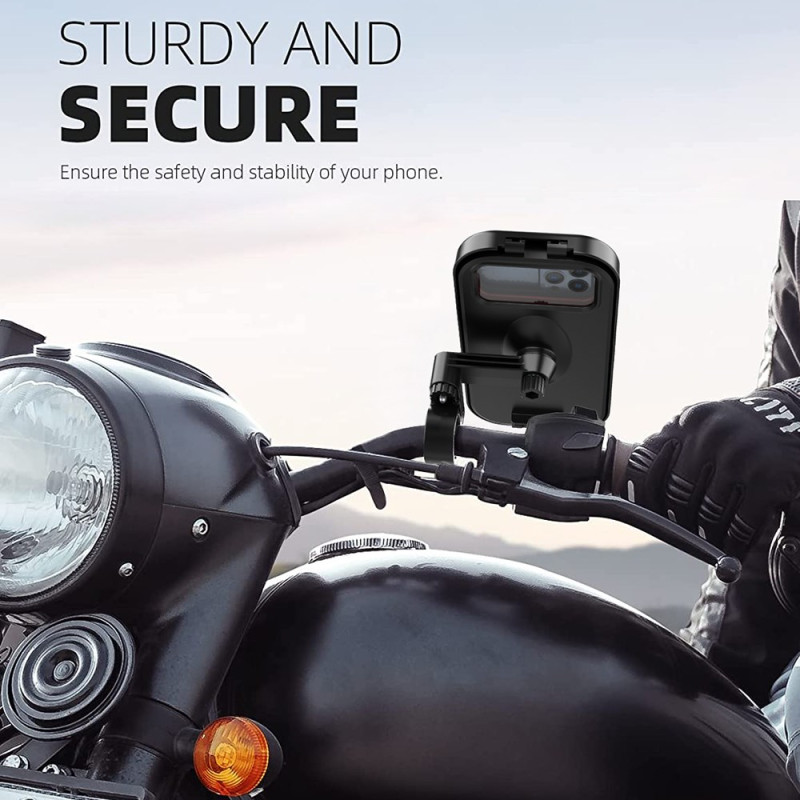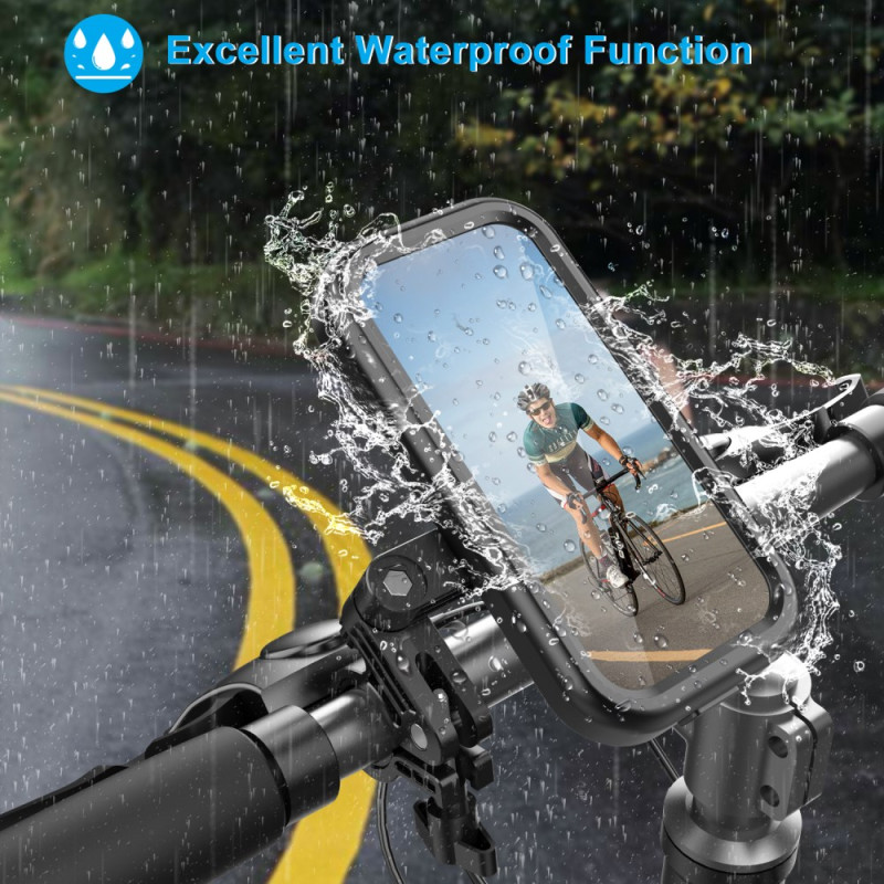 Gracias a su diseño totalmente impermeable, ahora la navegación continua está garantizada, incluso en los aguaceros más intensos. Este soporte está especialmente diseñado para fijarse de forma segura al espejo retrovisor (abertura de 10 mm) de su moto o bicicleta eléctrica. La funda de ABS y fibra de nylon protege el teléfono (de 4,7 a 6,8 pulgadas) del agua, la arena y el polvo. Las almohadillas de silicona y una esponja interna absorben los golpes y las vibraciones. La rótula permite una rotación de 360° para obtener ángulos de visión óptimos, mientras que el acceso total a la pantalla táctil garantiza la facilidad de uso.