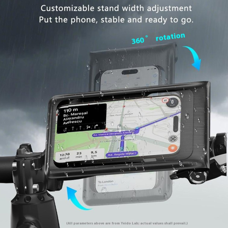 La integridad de su smartphone está garantizada contra la inmersión temporal, el polvo y las condiciones meteorológicas más adversas. Este soporte YESIDO IP67 ofrece una doble protección gracias a su diseño totalmente cerrado y a su sistema de sellado por tiras. La ventana transparente de alta claridad permite el reconocimiento facial y el funcionamiento normal del teléfono (de 4,7 a 7,3 pulgadas) sin sacarlo de la funda. La fijación al manillar, compatible con diámetros de 16 a 29 mm, garantiza un agarre estable, complementado con una rotación de 360° para un ángulo de visión óptimo.