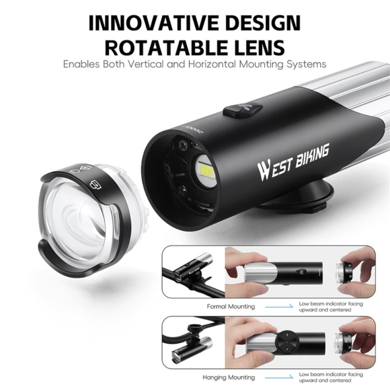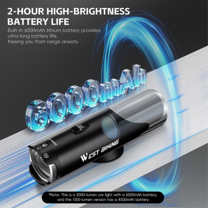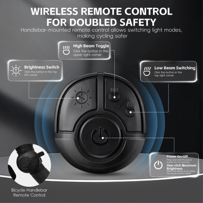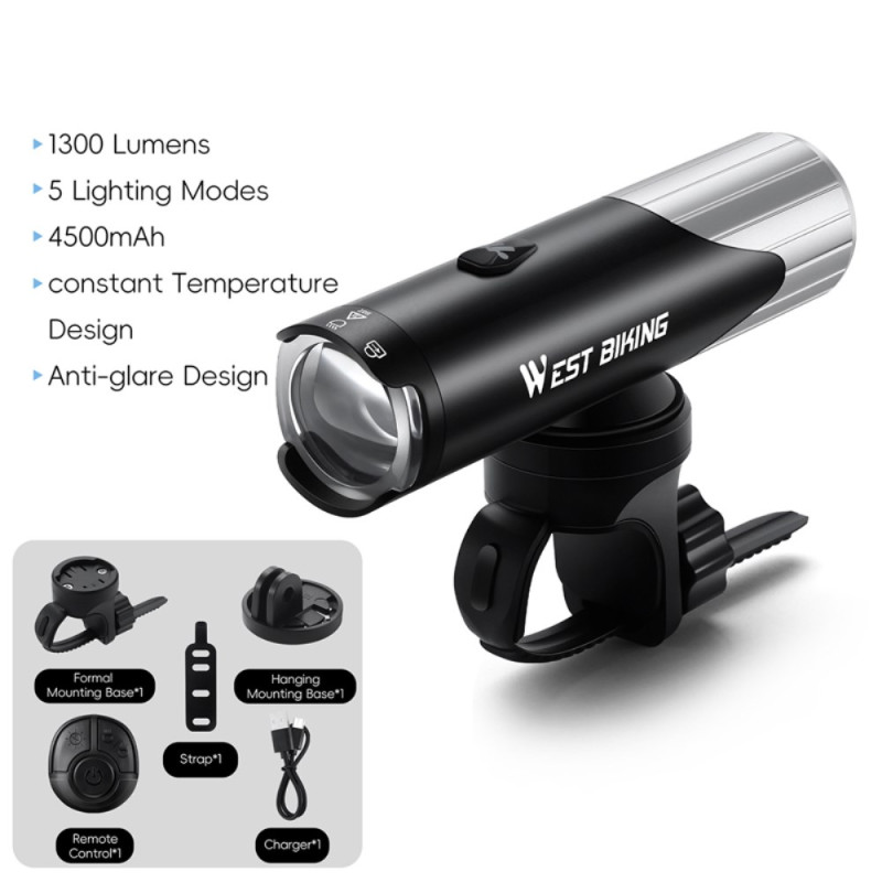 Gracias a su mando a distancia inalámbrico, ya no tendrás que quitar las manos del manillar para ajustar la luz de seguridad. Esta lámpara WEST BIKING proporciona 1300 lúmenes, lo que garantiza una visibilidad excepcional para el bicicleta nocturno. Su funda de aleación de aluminio incorpora un sistema inteligente de gestión térmica para garantizar una iluminación estable. La batería de 4500mAh ofrece una gran autonomía para largas distancias. Con clasificación IP66, está totalmente protegida contra el polvo y los potentes chorros de agua. La instalación es rápida y segura en manillares de 1,5 a 3,5 cm.