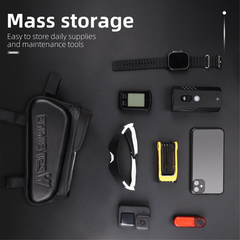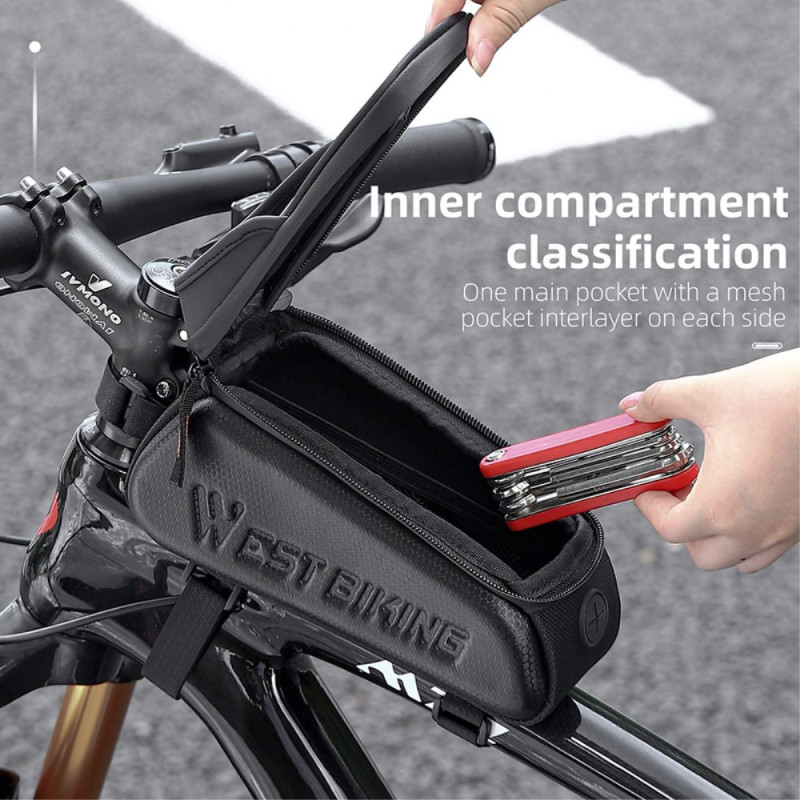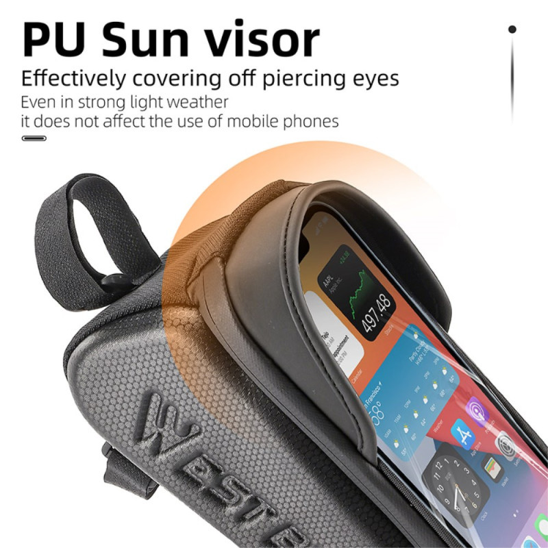 Diseñar una navegación fluida y un acceso inmediato a las herramientas es el principal objetivo de esta alforja de cierre rápido. Fabricada con una mezcla de EVA, cuero y poliéster, ofrece protección repelente al agua y resistencia al desgaste. Su película táctil de TPU permite utilizar el teléfono (de hasta 6,8 pulgadas) para el GPS, y el parasol integrado aumenta la claridad con luz intensa. La bolsa tiene una capacidad de 0,8 litros, suficiente para una batería externa y un kit de reparación. El sistema de fijación rápida en el tubo superior garantiza un montaje y desmontaje instantáneos.
