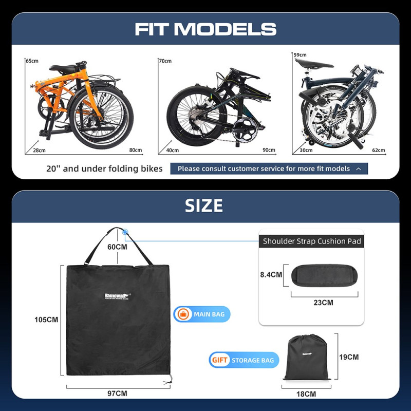 La protection optimale du vélo pliant pendant le transport est désormais assurée par une housse compacte et durable. Cette housse RHINOWALK est fabriquée en polyester 600D résistant à l'eau et aux éraflures. Elle est conçue pour accueillir des vélos pliants mesurant jusqu'à 20 pouces. Le transport est facilité par une bandoulière ajustable, permettant un portage à l'épaule ou à la main. Deux sangles internes sécurisent le cadre du vélo pour éviter les mouvements pendant le transit. Une fois vide, la housse se replie dans une pochette de rangement fournie.