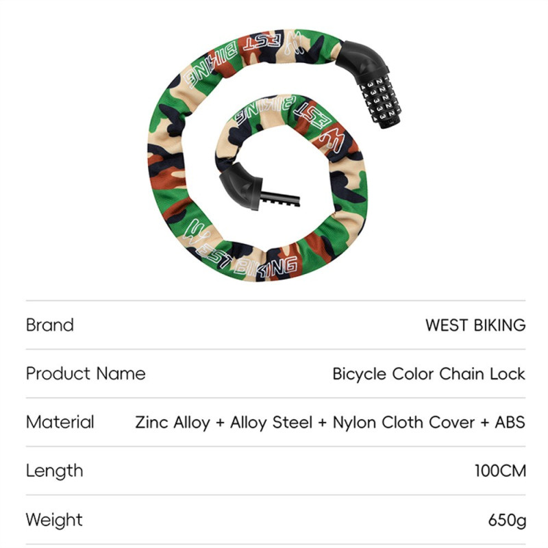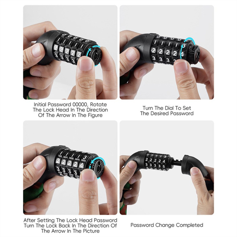 Con el riesgo de robo en aumento, sólo un sistema de cierre de eficacia probada puede ofrecer total tranquilidad. Esta cadena antirrobo utiliza un código de cinco dígitos (100.000 combinaciones) para ofrecer la máxima seguridad. El cable interno de acero de alta resistencia está recubierto de una funda de nailon resistente para proteger la pintura de su vehículo de arañazos. El cabezal de cierre de aleación de zinc fundido a presión proporciona una estructura sólida. Con una longitud de 100 cm, ofrece un amplio alcance para sujetar motos, bicicletas eléctricas y bicicletas de carretera a objetos fijos. Su peso de 650 g es ideal para el transporte diario.