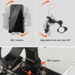 El uso de una aleación de aluminio de alta calidad da a este soporte una garantía de durabilidad y resistencia. Fabricado para soportar los rigores del bicicleta , sujeta firmemente teléfonos de entre 60 mm y 100 mm de ancho. El robusto sistema de anillas de sujeción garantiza un ajuste seguro en el manillar de tu bicicleta o vehículo eléctrico. El ángulo del dispositivo es totalmente ajustable, lo que permite optimizar la pantalla para obtener la máxima navegación o visibilidad. Este soporte está diseñado para un uso fiable y duradero.