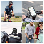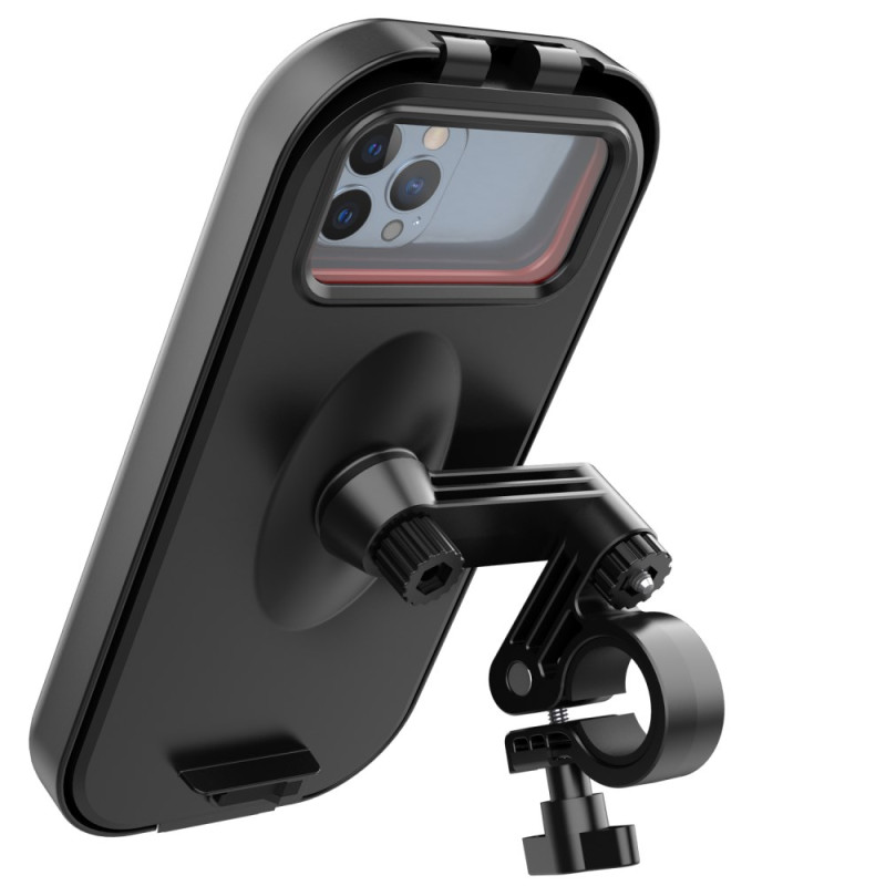 Fusionnant l'étanchéité d'un boîtier scellé à la stabilité d'un support guidon, cette fixation garantit une utilisation sans compromis. Fabriqué à partir d'un composite ABS/Nylon renforcé, ce support offre une protection complète contre la pluie, la neige et la poussière. Les coussinets internes en silicone et éponge absorbent les chocs, assurant un maintien sécurisé et ferme du téléphone (4.7 à 6.8 pouces). La tête pivotante permet une rotation de 360 degrés pour un angle de vue parfait. Il s'installe facilement sur les guidons de 18mm à 35mm de diamètre.