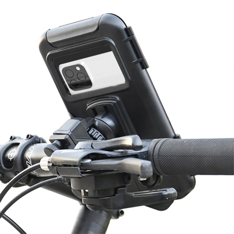 Permettre la capture d'images sans compromettre l'étanchéité : c'est l'atout majeur de ce support de téléphone pour guidon. Le boîtier scellé protège efficacement votre appareil (4 à 6.5 pouces) de la pluie et de la poussière grâce à son joint en silicone. La fenêtre transparente à l'arrière permet l'utilisation de l'appareil photo, vous assurant de ne manquer aucun paysage. Un orifice de charge est réservé en bas pour l'alimentation continue du dispositif. Sa construction en ABS et EVA assure une bonne résistance aux chocs. Il s'installe facilement sur les vélos, motos et vélos électriques.