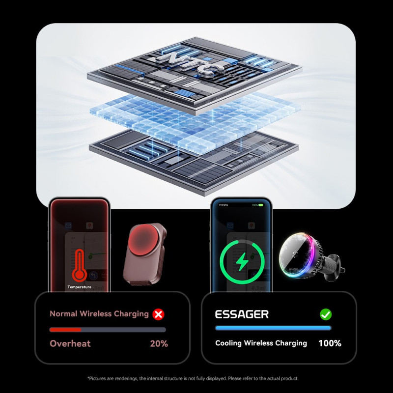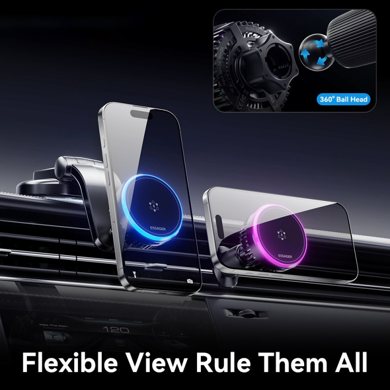 Innovador cargador magnético inalámbrico de 15 W con avanzado sistema de refrigeración TEC y ventilador de alta velocidad. Fácil instalación en la rejilla de ventilación, rotación de 360° para una colocación óptima. Carga rápida y segura con indicador LED.