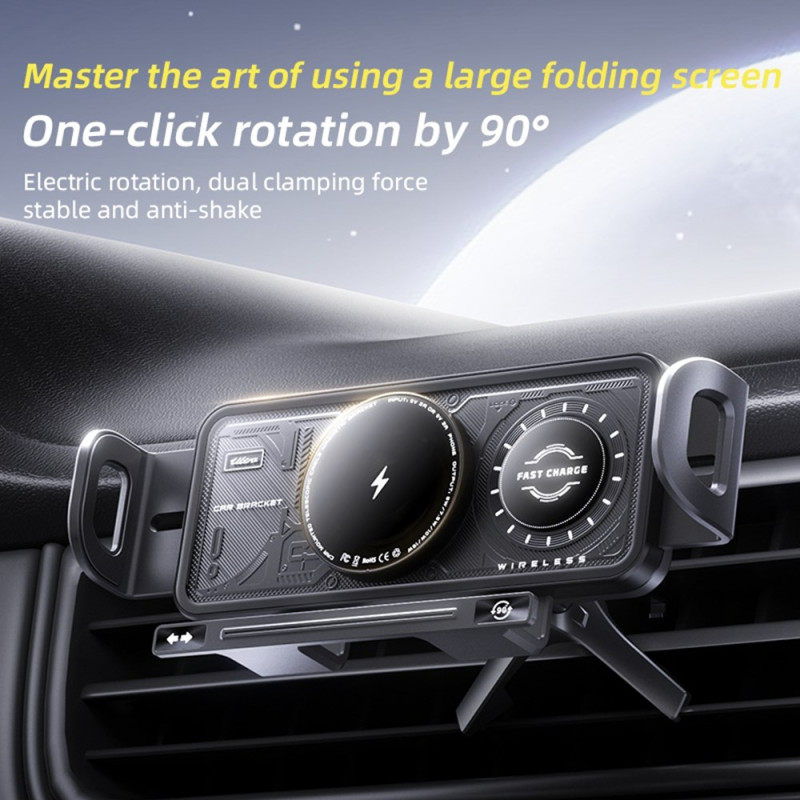 Descubra el soporte para coche SD04 con cargador inalámbrico de 15 W. Diseñado para smartphones plegables y clásicos, cuenta con rotación eléctrica de 360°, función de liberación automática y fácil instalación en una rejilla de ventilación....