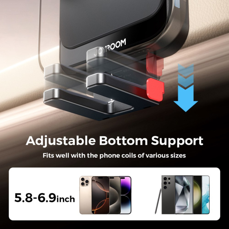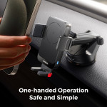 Carga tu smartphone fácilmente con este soporte inteligente para coche con carga inalámbrica rápida de 15 W. Fácil instalación con una sola mano, rotación de 360° para un ángulo de visión óptimo y sujeción segura gracias a las abrazaderas laterales. Compatible con dispositivos de 5,8" a 6,9".