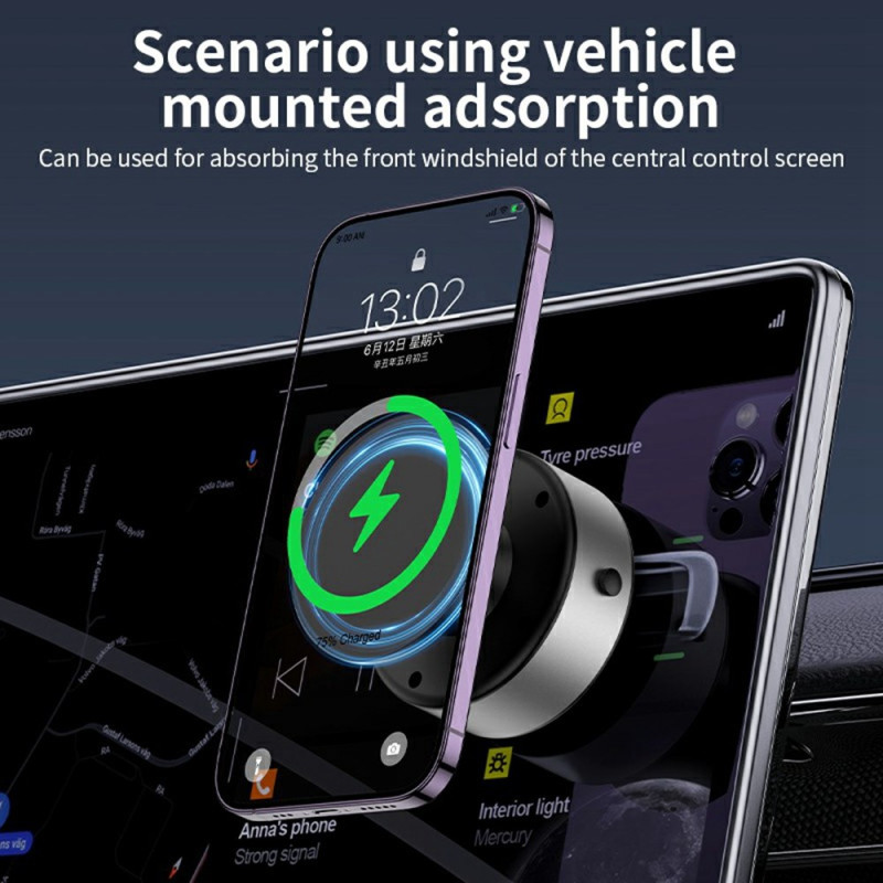 Descubre el soporte magnético para coche con carga inalámbrica rápida de 15 W. Fijación ultrasegura mediante ventosa de vacío, rotación de 360° para un ángulo de visión óptimo y potentes imanes N52 para una sujeción fiable. Compatible con todos los smartphones de 4,7 a 7 pulgadas.