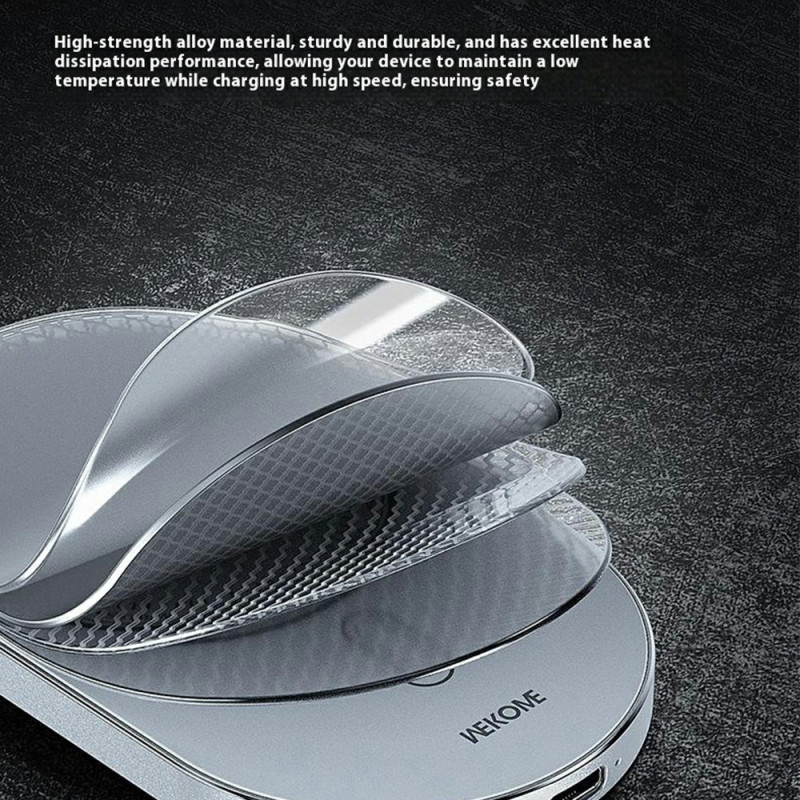 Descubre el soporte magnético de carga inalámbrica WEKOME para coche. Disfruta de una carga rápida de hasta 15 W, rotación de 360° y un soporte magnético N52 ultrapotente. Fácil de instalar en una rejilla de ventilación.