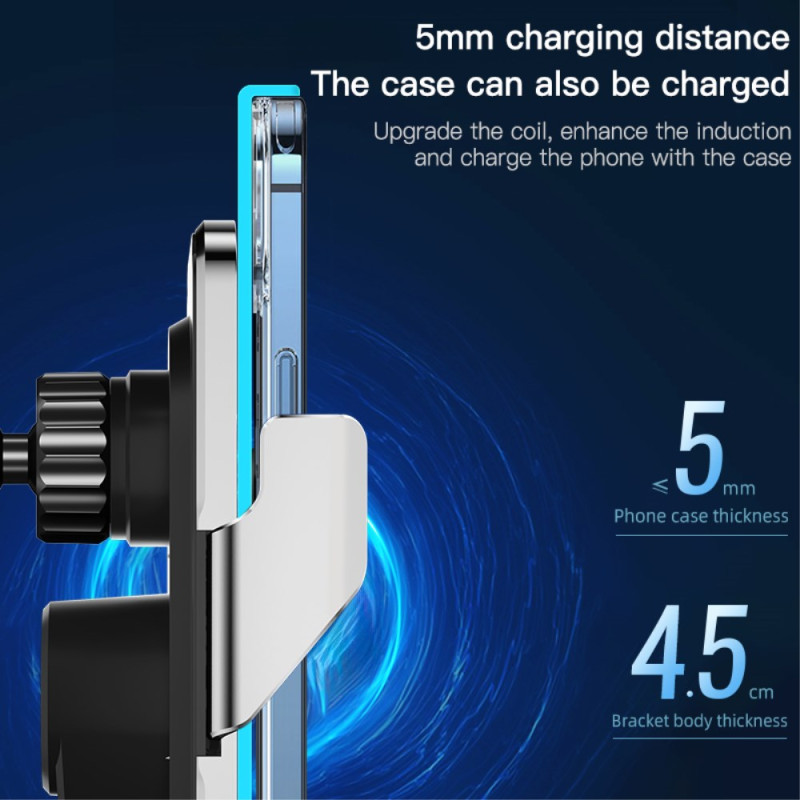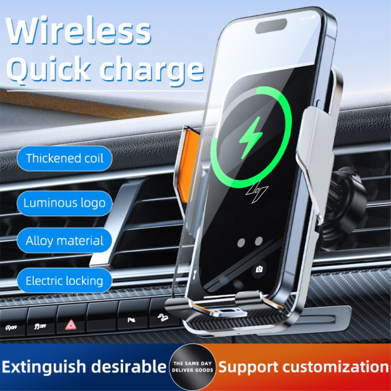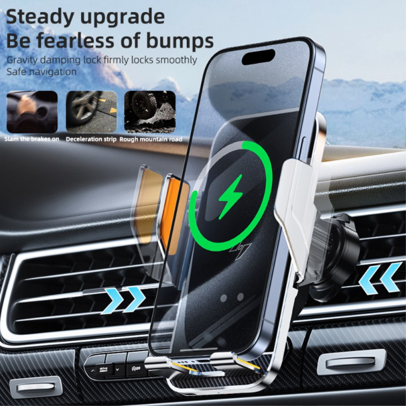 Carga tu teléfono fácilmente con este innovador soporte para el coche. Con un cargador inalámbrico rápido de 15 W, rotación de 360° e iluminación ambiental LED, combina rendimiento y estilo para tus desplazamientos diarios.