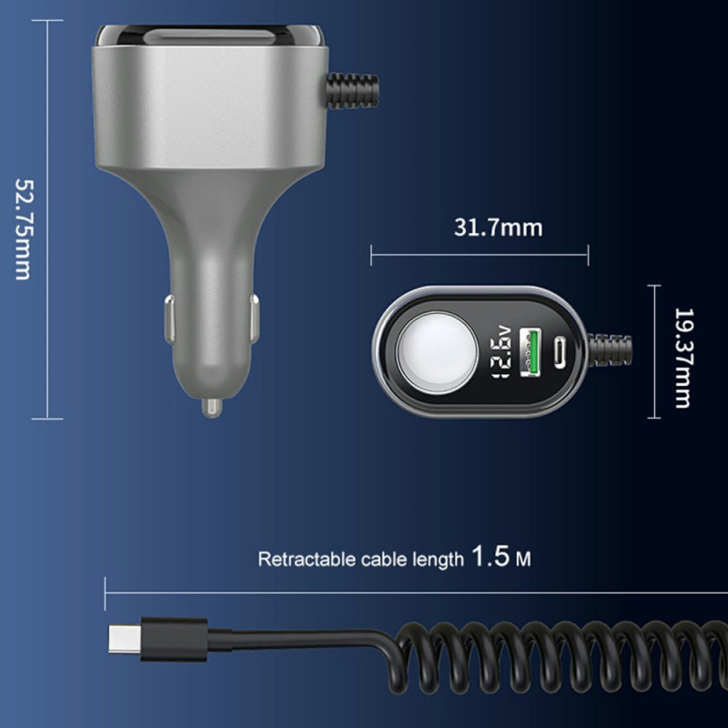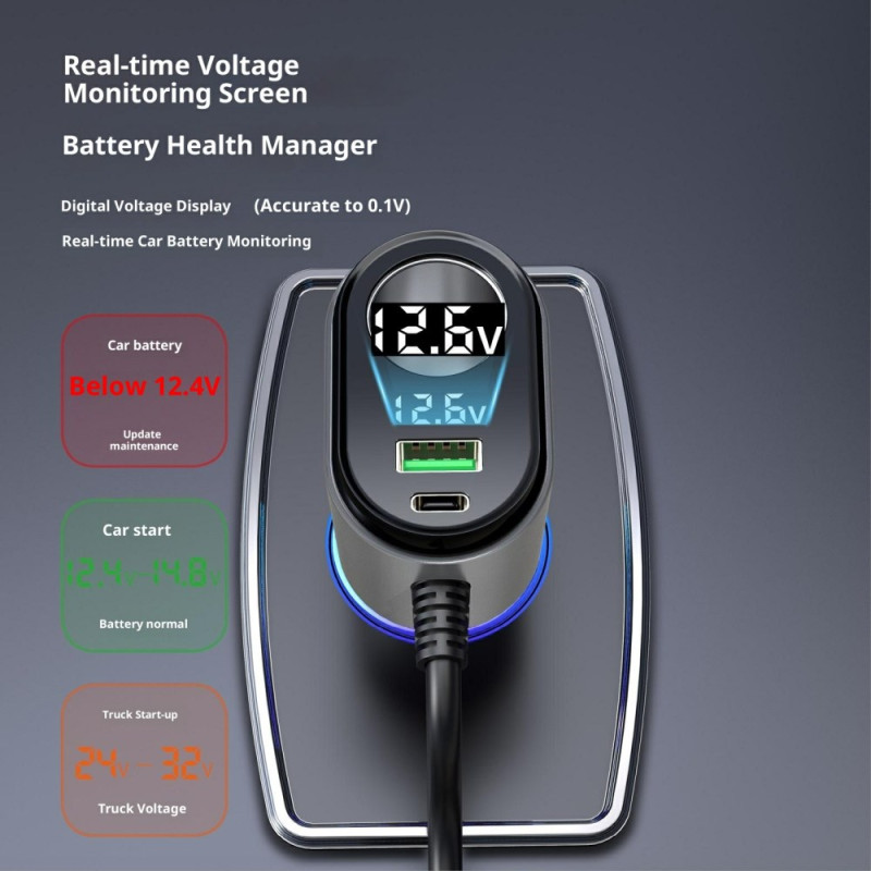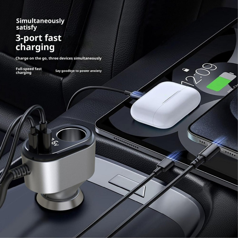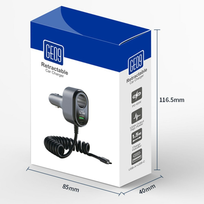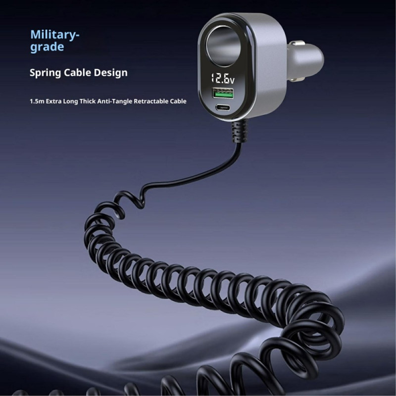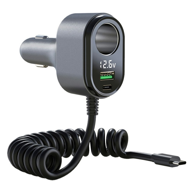 Rechargez jusqu'à 3 appareils simultanément avec ce chargeur voiture haute performance. Profitez de la technologie PD 65W sur deux ports USB-C et d'un port USB-A QC 18W. Équipé d'un écran de tension et d'un câble spirale pratique, il assure une charge rapide et sécurisée dans toutes les conditions de température.