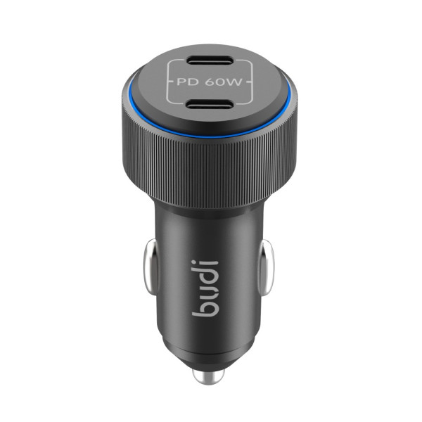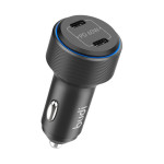 Chargeur voiture haute performance avec double port USB-C offrant 60W de puissance totale. Rechargez simultanément deux appareils à 30W chacun grâce à la technologie de charge rapide PD. Design compact élégant avec anneau LED lumineux pour visualiser l'état de charge en un coup d'œil. Compatible avec tous les appareils USB-C.