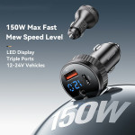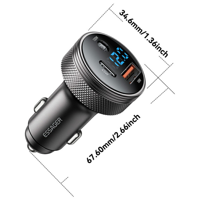 Cargador de coche de 150 W de alto rendimiento con pantalla digital para monitorización en tiempo real. Equipado con 3 puertos (USB-A, Type-C, DC) para cargar todos tus dispositivos simultáneamente. Tecnología de carga rápida inteligente y 6 niveles de protección...