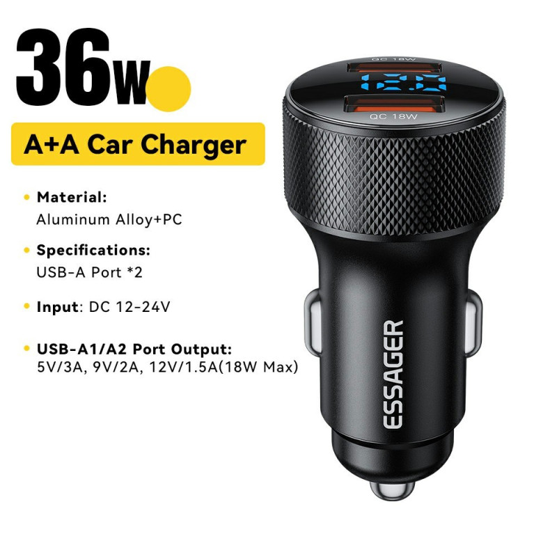 Cargue rápidamente sus dispositivos mientras se desplaza con este cargador de coche de doble puerto y alto rendimiento. Con tecnología Power Delivery de 36 W y pantalla digital, ofrece una carga simultánea óptima para todos tus dispositivos compatibles.