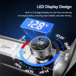 Cargador de coche de alto rendimiento de 108 W con doble puerto USB-C de 45 W y puerto USB-A de 18 W. Tecnología Power Delivery para una carga ultrarrápida de tus dispositivos. Pantalla LED integrada para monitorización en tiempo real. Compatible con smartphones, tabletas y portátiles.