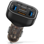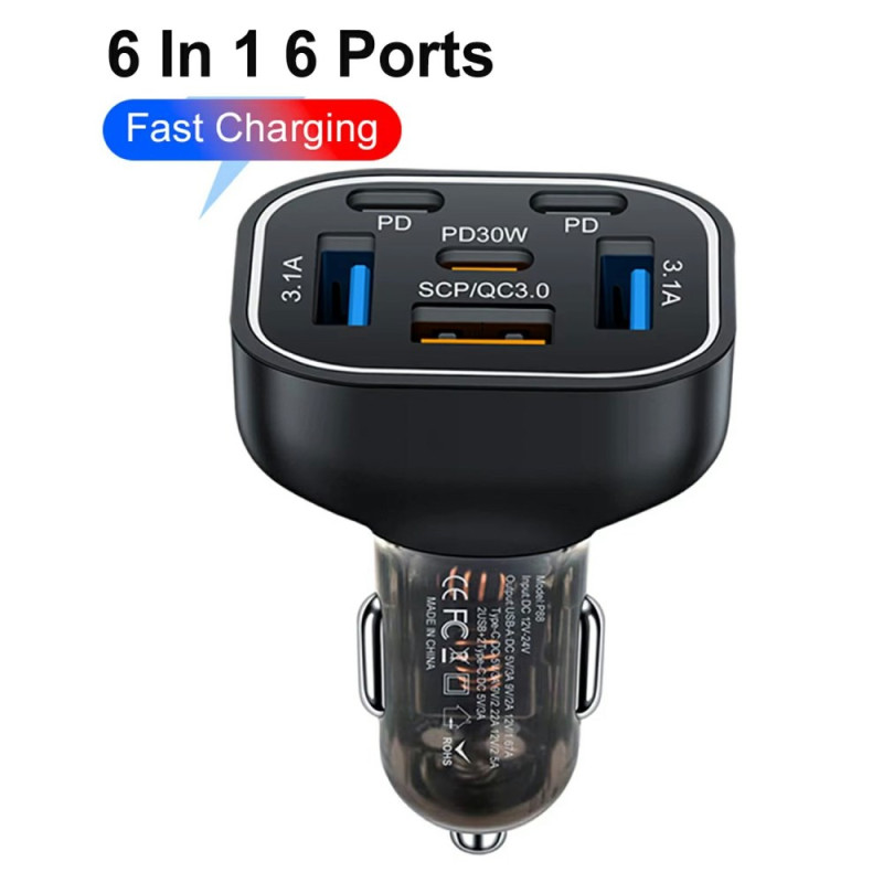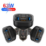 Carga hasta 6 dispositivos simultáneamente con este compacto cargador de coche de 63 W. Con 3 puertos USB y 3 puertos PD Type-C, ofrece una carga rápida y eficaz a la vez que protege tus dispositivos. Su elegante diseño con LED de 7 colores le da un toque único.
