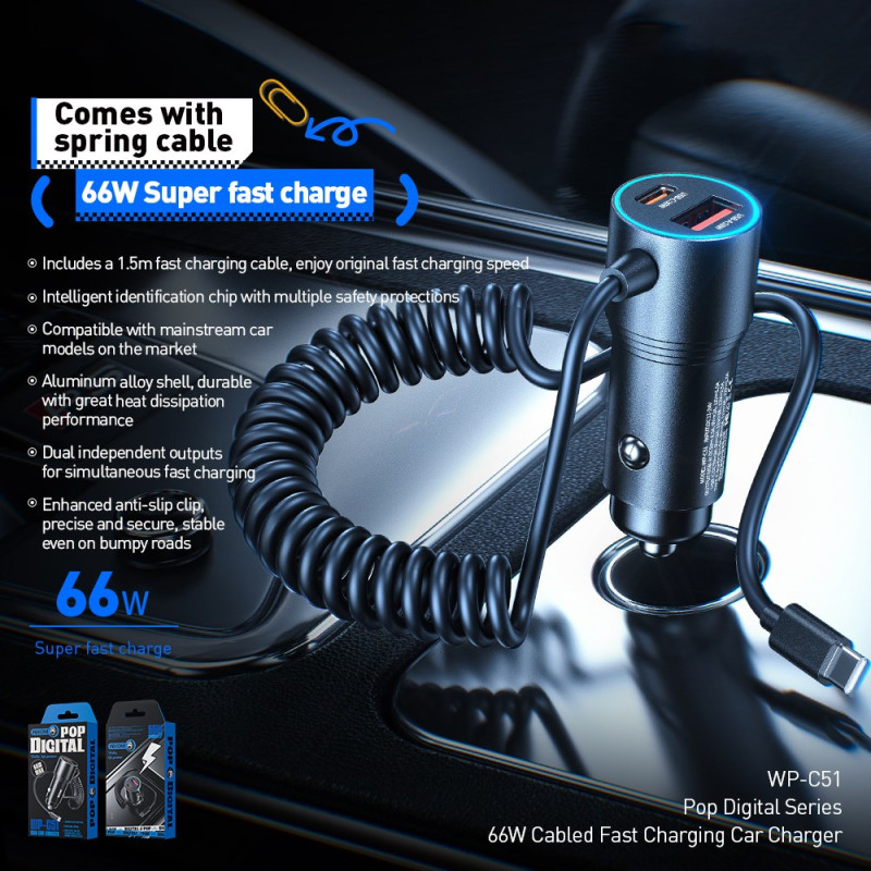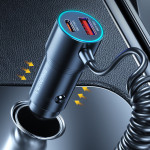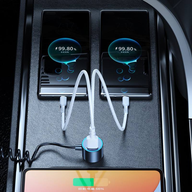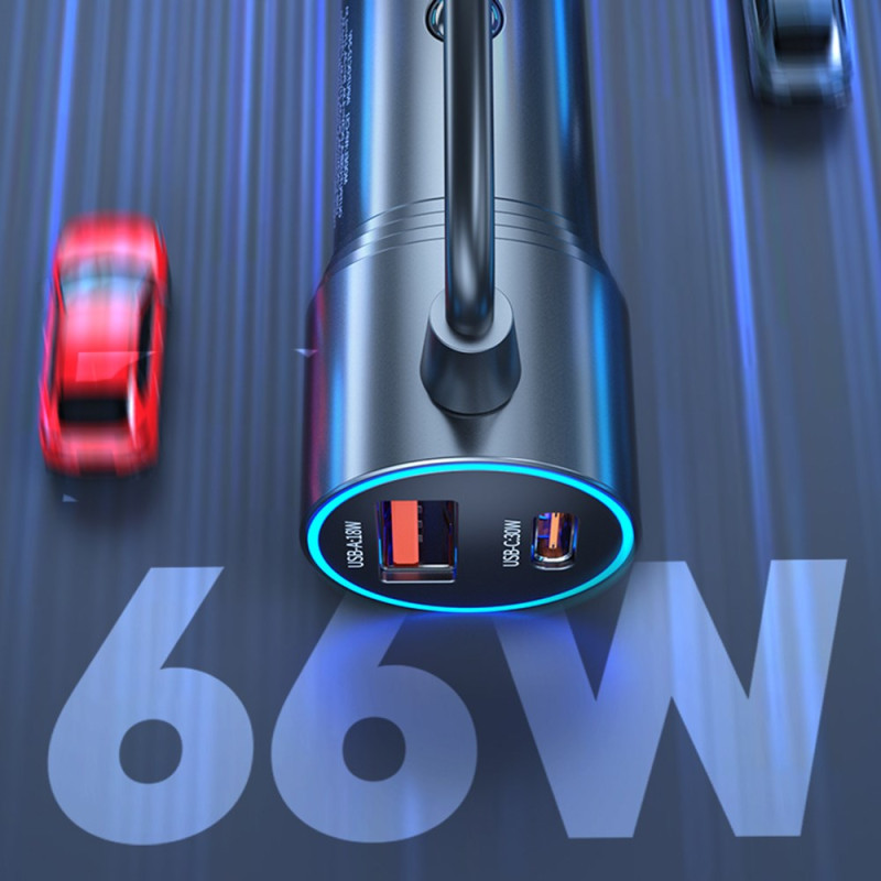 Disfruta de una carga ultrarrápida de 66 W en cualquier lugar con este cargador inteligente para coche. Con un cable retráctil Type-C integrado de 1,5 m, varios puertos USB-A y USB-C, y protección avanzada para tus dispositivos. Compatible con todos los vehículos.