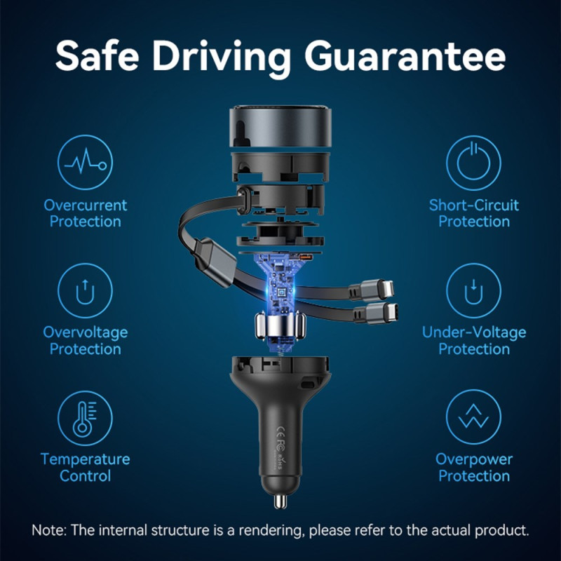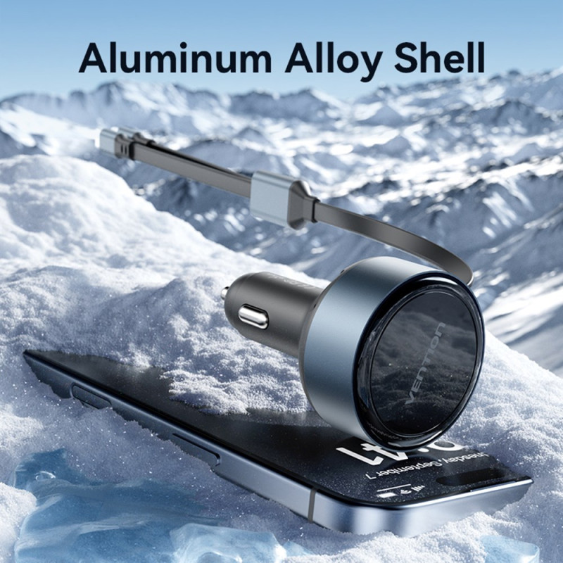 Carga tus dispositivos en un abrir y cerrar de ojos con este innovador cargador de coche con tecnología Power Delivery de 30 W. Con sus dos cables Type-C y iP integrados, no hay necesidad de llevar cables adicionales. Aprovecha una potencia total de salida de 60 W para alimentar varios dispositivos simultáneamente.