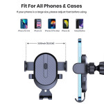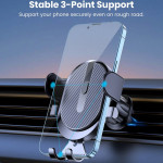 Innovador soporte de teléfono para el coche con sujeción de ventilación. Sistema de bloqueo de 3 puntos para una estabilidad óptima en todos los terrenos. Montaje y desmontaje con una sola mano en un segundo. Rotación de 360° para ajustar el ángulo.